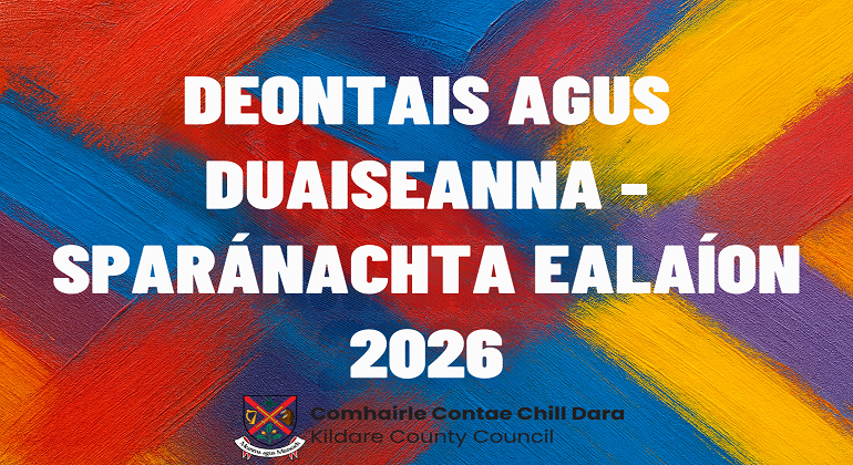 Tá lúcháir ar Sheirbhís Ealaíon Chomhairle Contae Chill Dara a fhógairt go bhfuil an tréimshe iarratas á n-oscailt dá sraith Deontas Cruthaitheacha agus Ealaíon agus dá Dámhachtainí Sparánachta 2026. Tá 15 dheis ar fáil idir dheontais, choimisiúin agus sparánachtaí éagsúla, a dearadh le tacú le healaíontóirí, le lucht cruthaitheachta, grúpaí ealaíon, grúpaí pobail agus grúpaí óige ar fud Chontae Chill Dara sa bhliain amach romhainn.