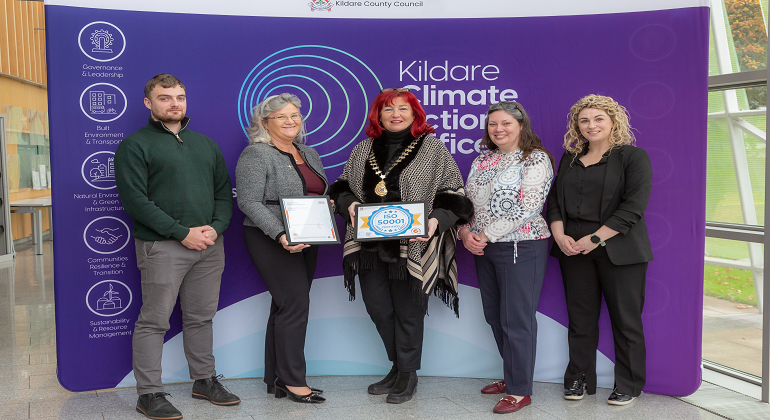 This achievement highlights Kildare County Council’s commitment to Climate Action. To achieve this certification an Energy Management Team was established with representation from across the organisation. A variety of projects and initiatives implemented to achieve energy efficiency in the past year include the Public Lighting Energy Efficiency Project (PLEEP), a shared staff EV car for business travel, a 90kWp Photovoltaic Array at Áras Chill Dara and Photovoltaic Arrays on Fire Stations. The Council now operates a fleet of over 20 Electric Vehicles, replacing Diesel Vehicles as part of ongoing decarbonization efforts. Additionally, a trial of Hydrotreated Vegetable Oil (HVO) is underway for several heavy goods vehicles. Looking ahead, an Energy Performance Contract will be established for buildings with significant energy use, and further upgrades and decarbonising projects are planned for other Kildare County Council buildings.