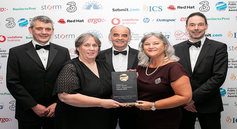 Kildare County Council was awarded the outstanding contribution to Planet Earth award at the third annual Public Sector Digital Transformation Awards. The ‘Grass-to-Gas’ project which was delivered in collaboration with Maynooth University was recognised for its innovation and excellence in the design and delivery of sustainable products or services, supported by technology, that can help tackle the environmental challenges faced by society today.