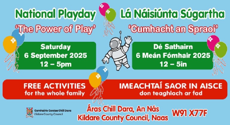 25 Lúnasa 2025: Tá Comhairle Contae Chill Dara ar bís agus sonraí faoin Lá Náisiúnta Súgartha 2025 á bhfógairt againn. Imeacht lán spraoi agus uilechuimsitheach a bheidh ann don teaghlach ar fad. Beidh an t-imeacht saor in aisce seo ar siúl in Áras Chill Dara, An Nás, Dé Sathairn 6 Meán Fómhair 2025 idir 12 i.n. agus 5 i.n.